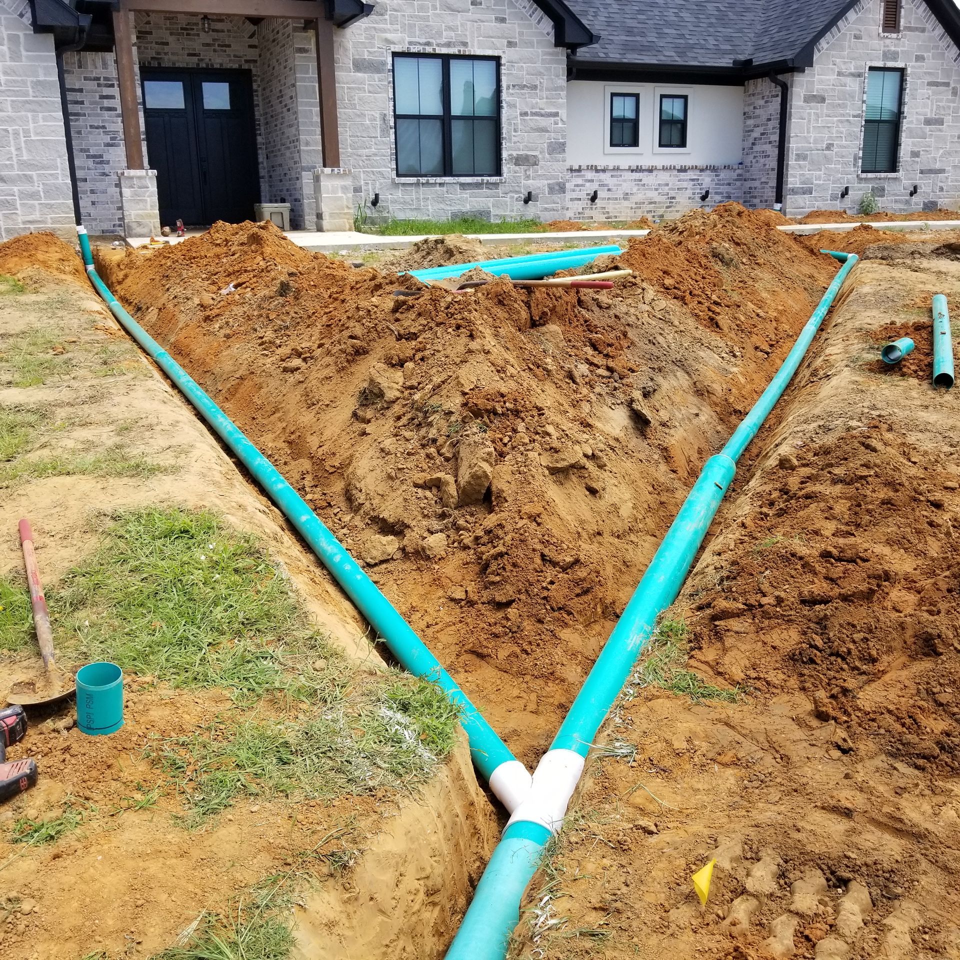 Today we traveled to Ennis, TX today to start a large drainage project including piping, grading, and gravel areas. We work with many corporate partners all over the East Texas region who value our vast knowledge base. One of our specialties is fixing drainage problems that other contractors could not. Let us know if we can help you!