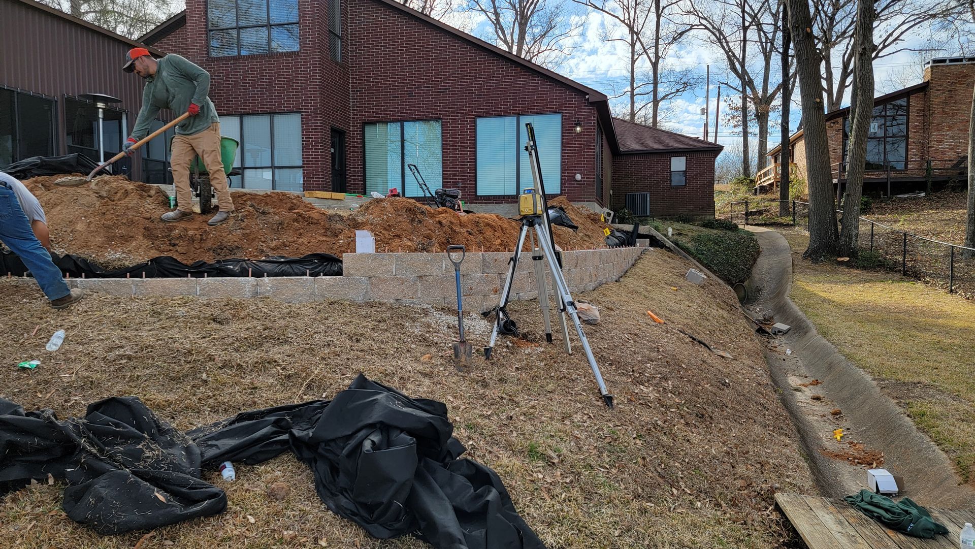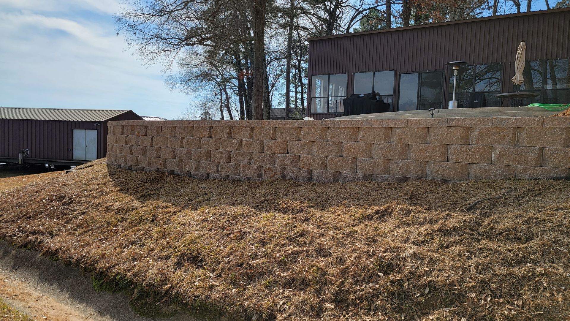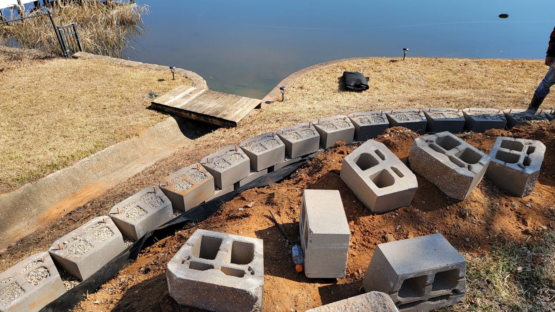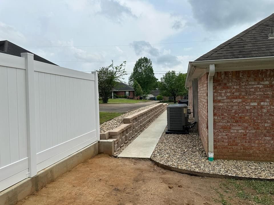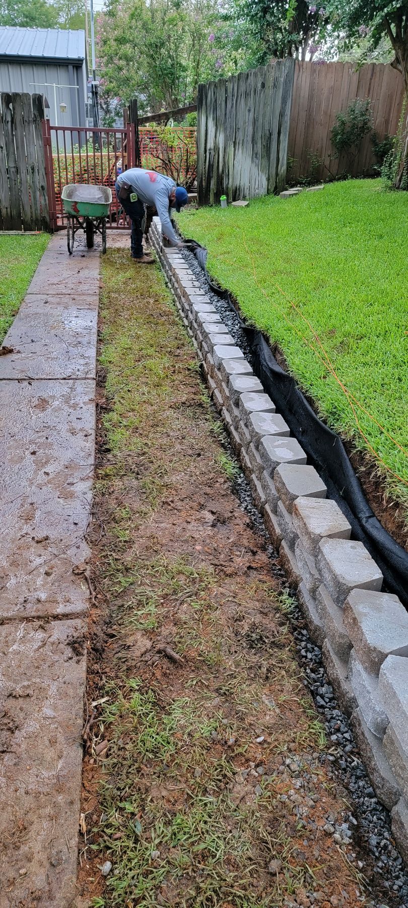 - Keystone Block walls- Stacked concrete block walls with gravel and drainage behind the wall